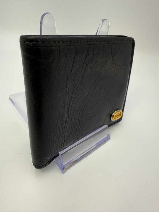 Gucci Black Leather Bifold Wallet Interlocking GG