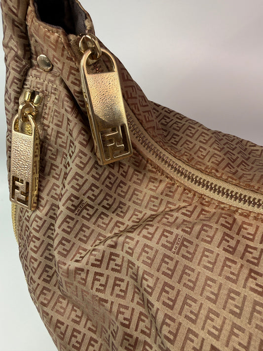 Fendi Mini Zucca Nylon Hobo Style Shoulder Bag