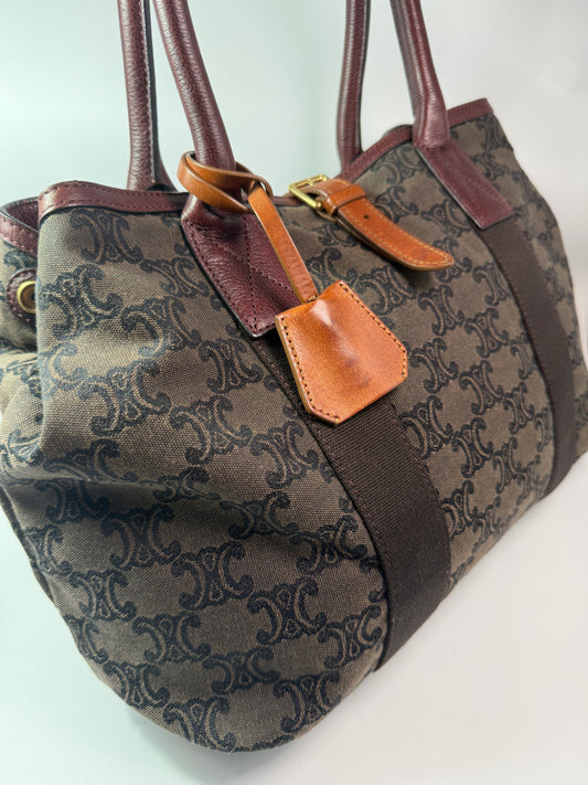 Celine Macadame Brown Canvas Tote Shoulder Bag