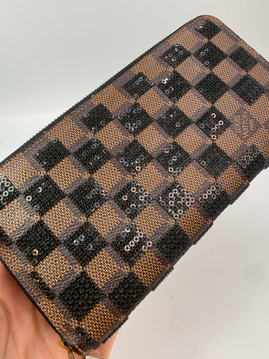 Louis Vuitton Damier Ebene Sequin Zippy Long Wallet Full Set CA1173