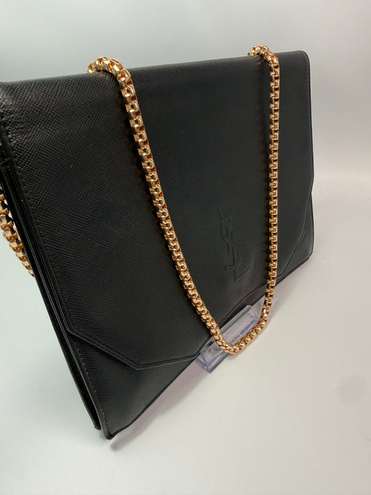 Yves Saint Laurent Black Grained Leather Envelope Clutch