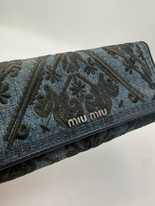 Miu Miu Blue Denim Embroidered Long Wallet with Card Holder