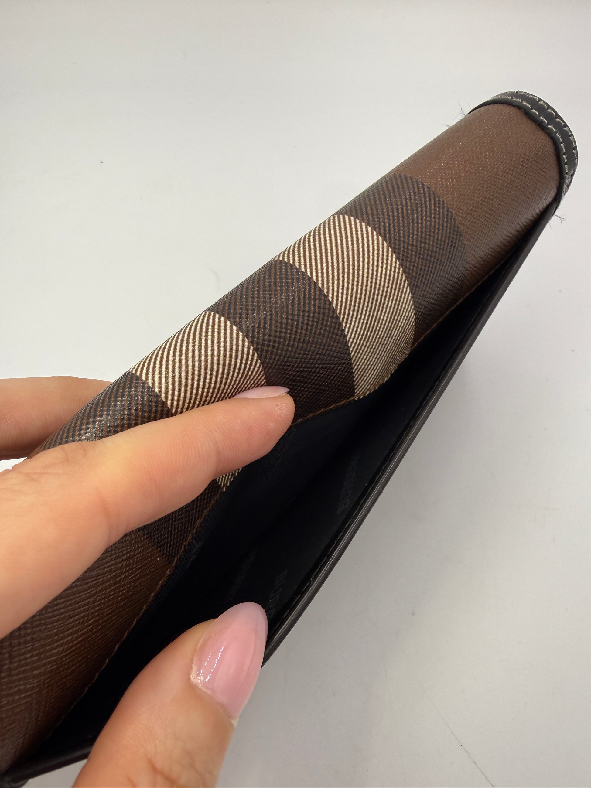 This Burberry Coated Canvas Novacheck Continental Wallet is a timeless and elegant piece, perfect for everyday luxury. Crafted in the iconic Burberry Check coated canvas and accented with smooth calf leather trim, this wallet embodies both function and sophistication. The foldover top with a logo-engraved press stud closure opens to reveal a thoughtfully designed interior, making it as practical as it is stylish.