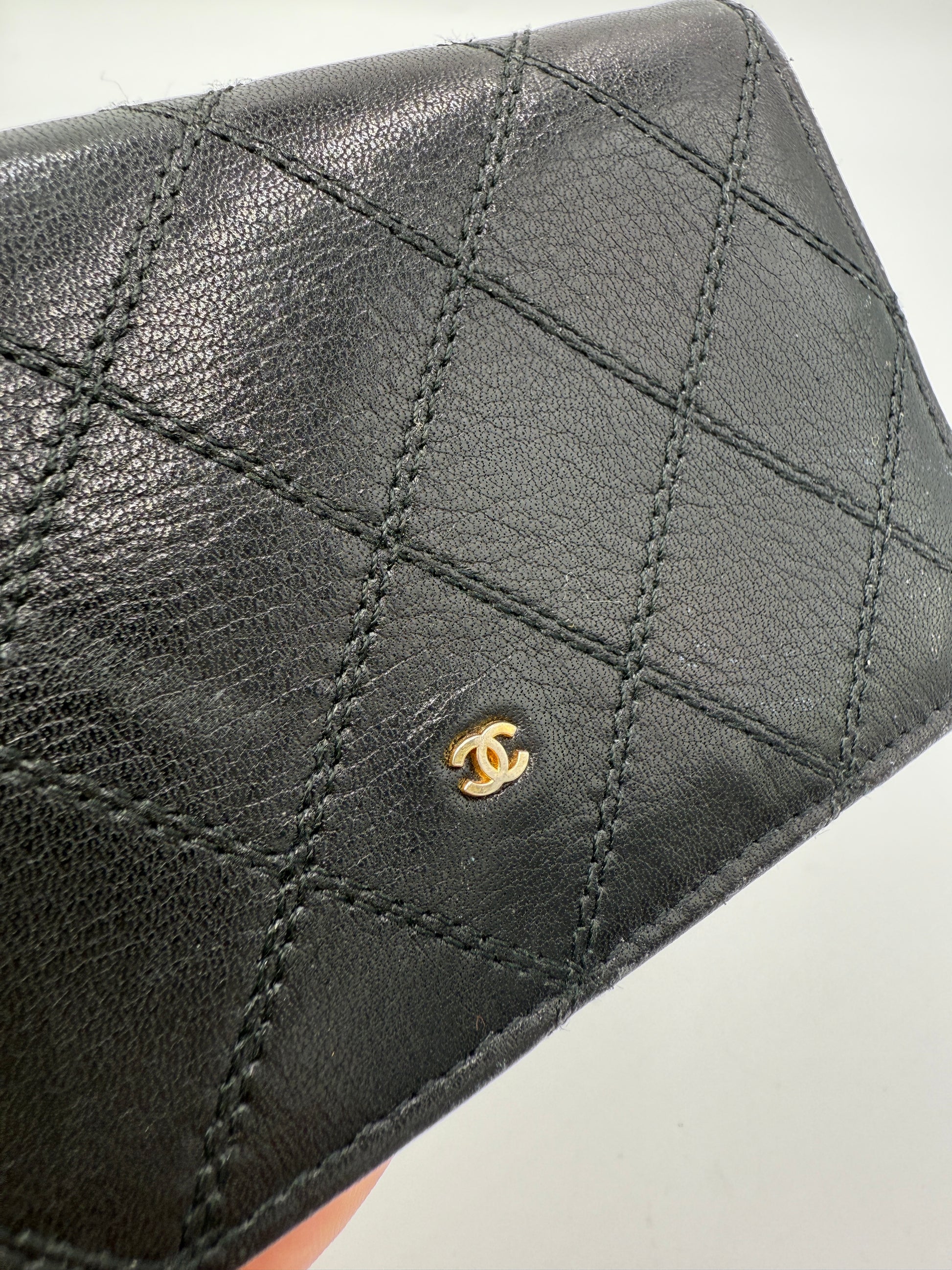 Chanel Black Diamond Stitch Leather Bifold Wallet Card Holder