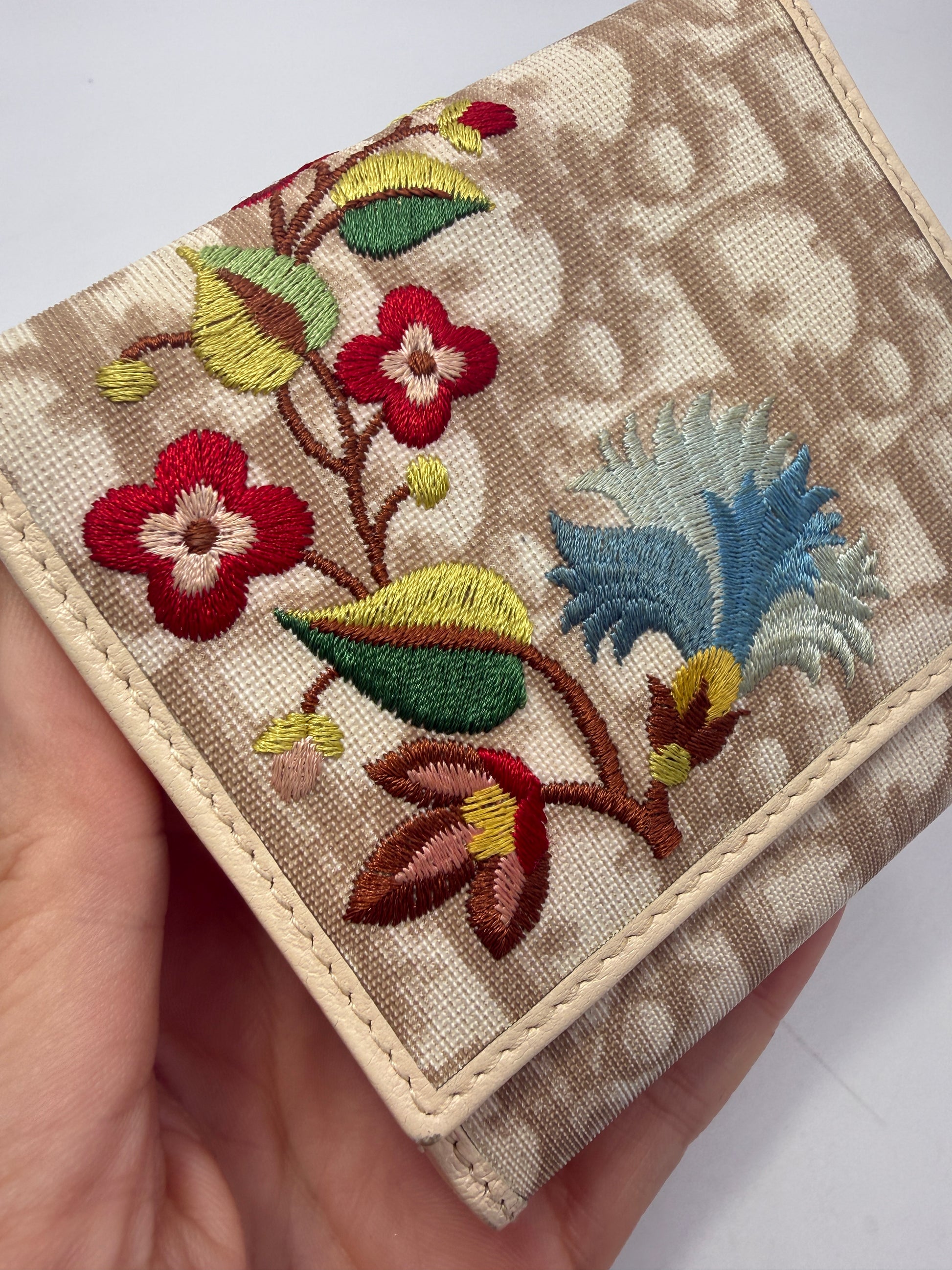 Christian Dior Embroidered Floral Trotter Compact Wallet