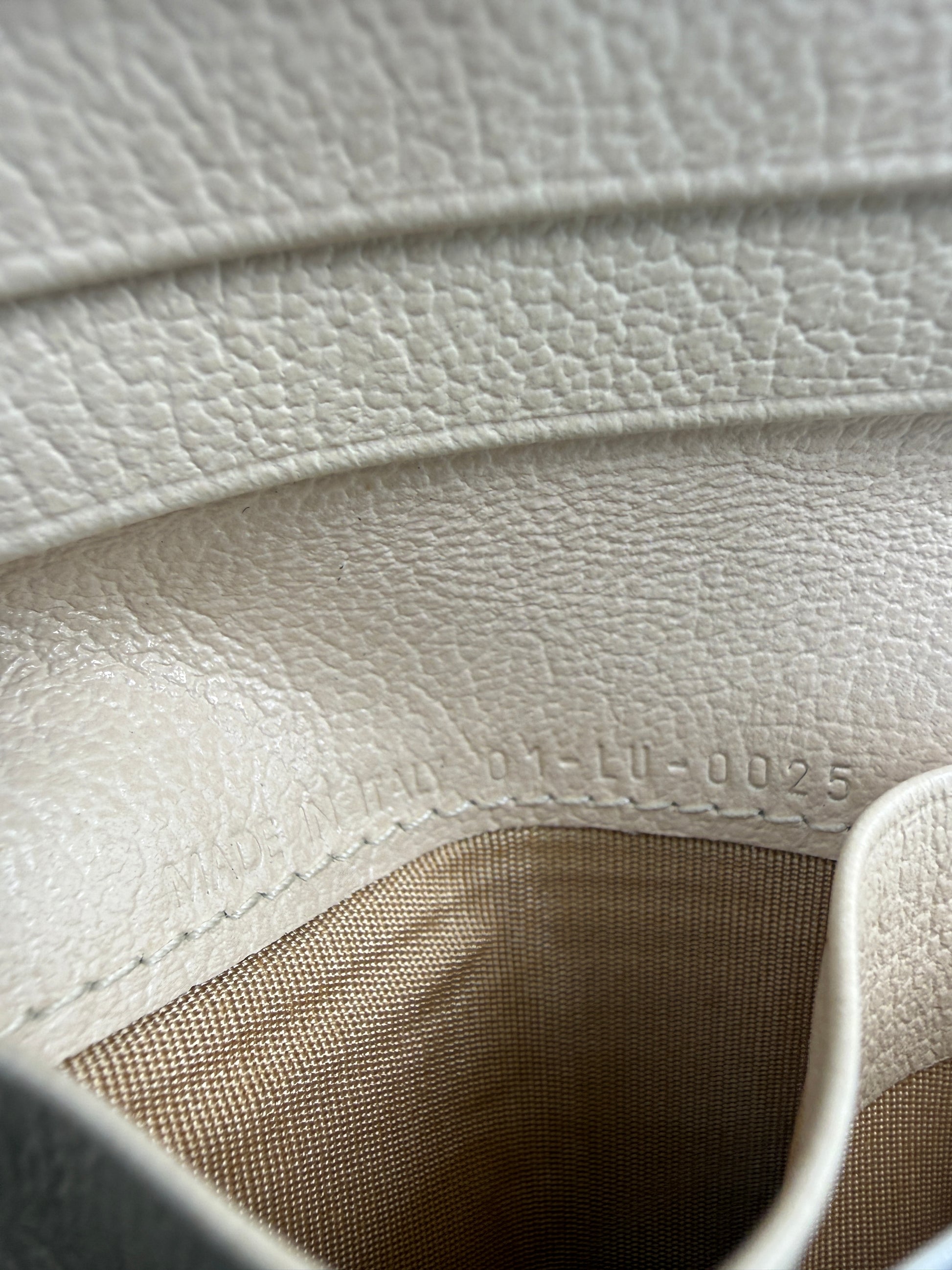 This Christian Dior Embroidered Floral Trotter Compact Wallet is a refined vintage piece that brings together Dior’s iconic trotter motif with a soft, feminine twist. Crafted in a cream and ivory fabric design, it features delicate embroidered floral accents that add texture and elegance. The ivory leather trim throughout frames the piece beautifully, highlighting its timeless sophistication.