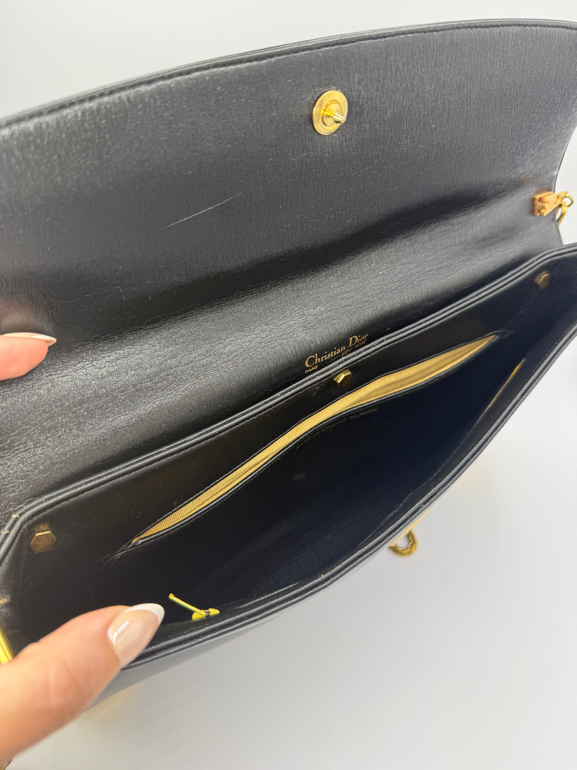 Christian Dior Navy Leather and Trotter Shoulder Bag Oversized Clutch