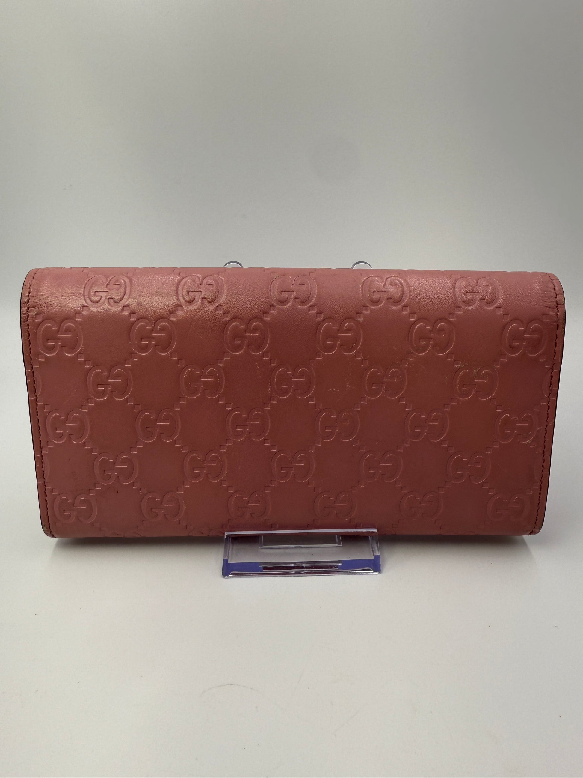 Elevate your everyday style with this chic pre-owned Gucci Guccissima pink long wallet – the perfect blend of luxury and function.