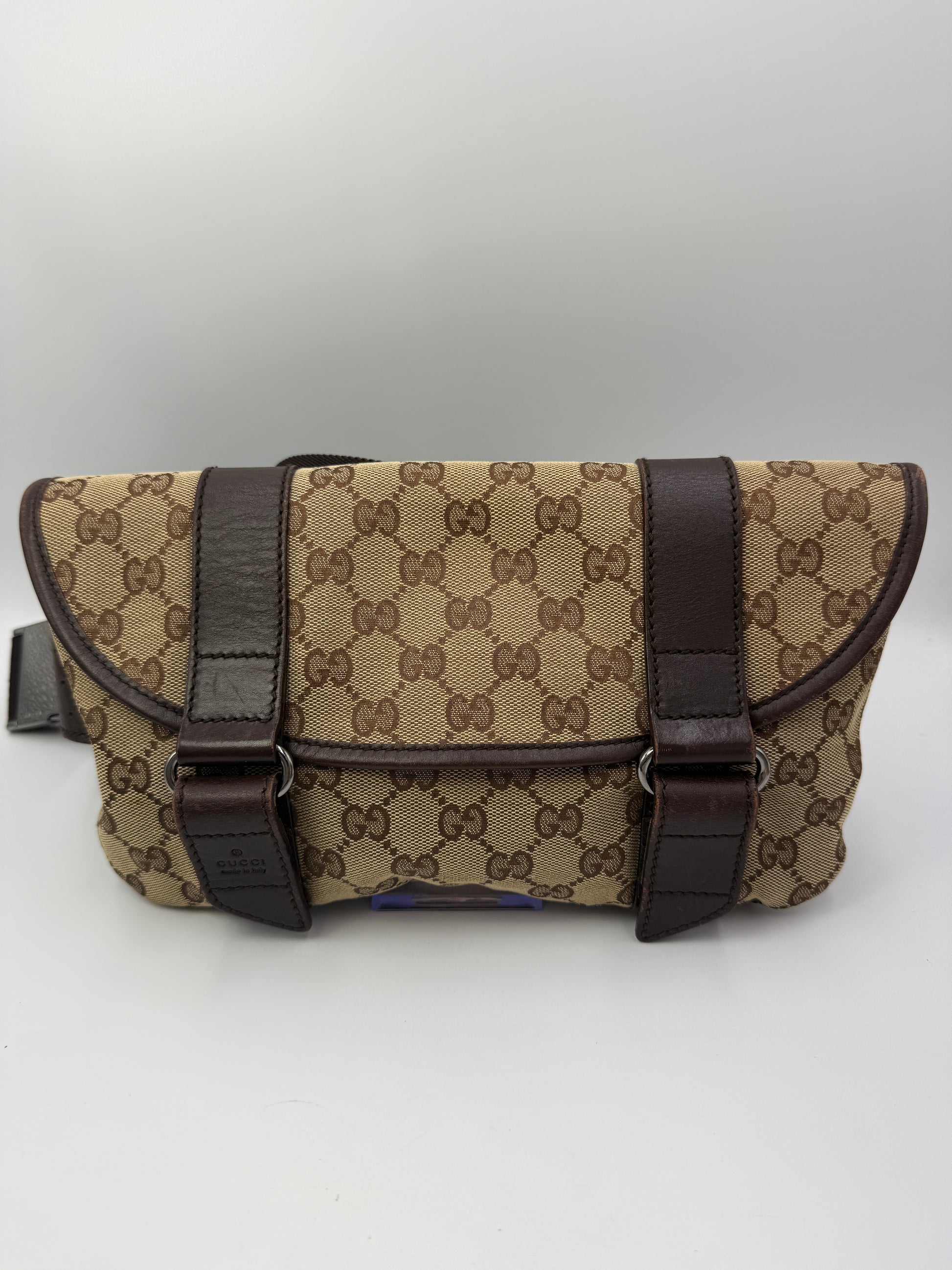 Gucci Uncoated Canvas Double Buckle Belt Sling Bag Unisex