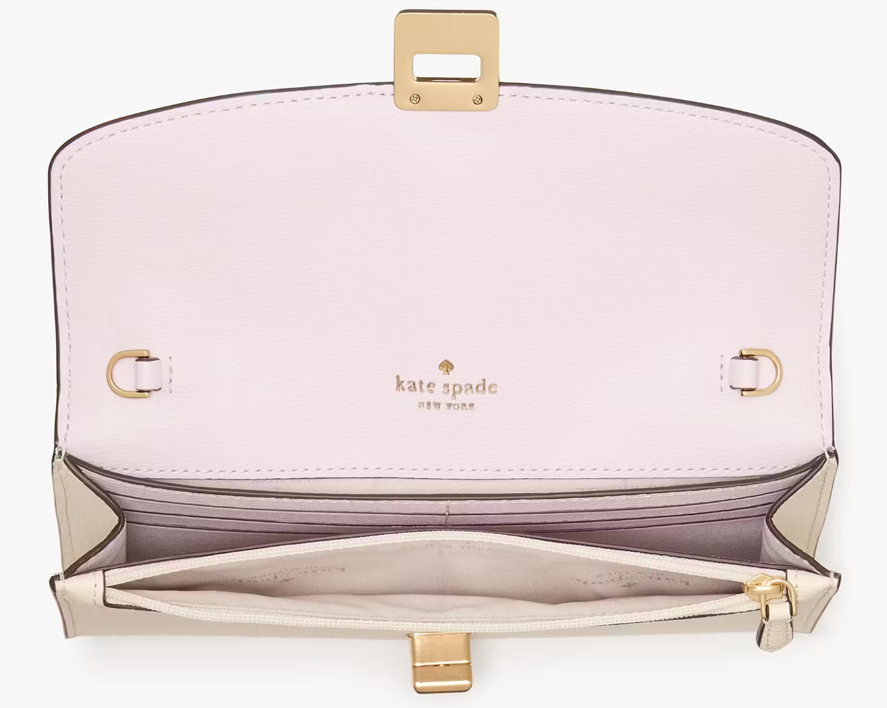 The front turnlock closure opens to a thoughtfully designed interior lined with the brand’s 2-Way Script Logo lining. Inside, you’ll find a zip pocket, slip pocket, and six dedicated credit card slots to keep your essentials organized. An additional exterior slip pocket adds extra convenience for quick-access items.
