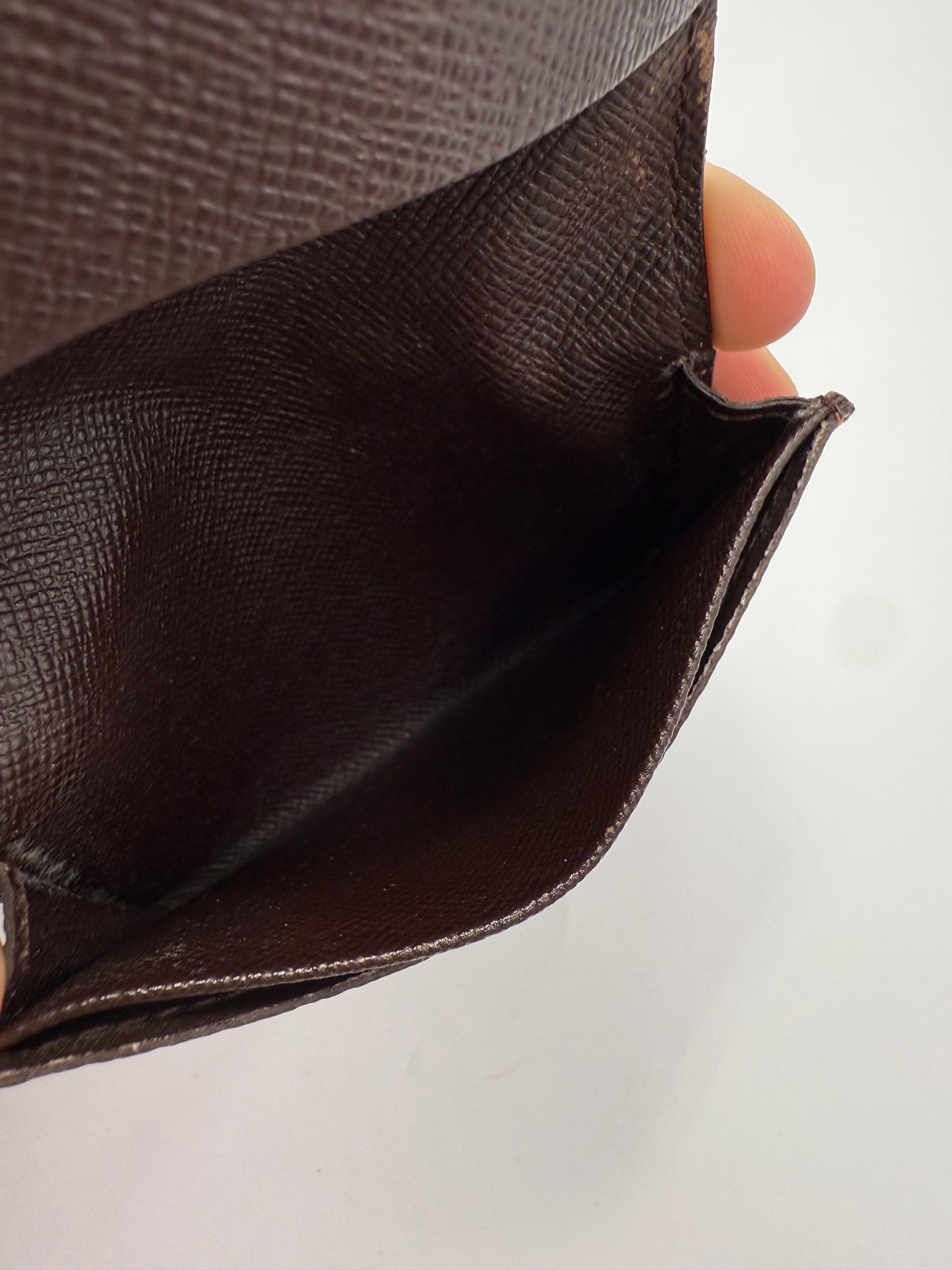 Other than a small curl that was pointed out - this wallet set looks new and came with the box. I always find fun unique pieces at an excellent prices at this store. Can’t wait for my next purchase!