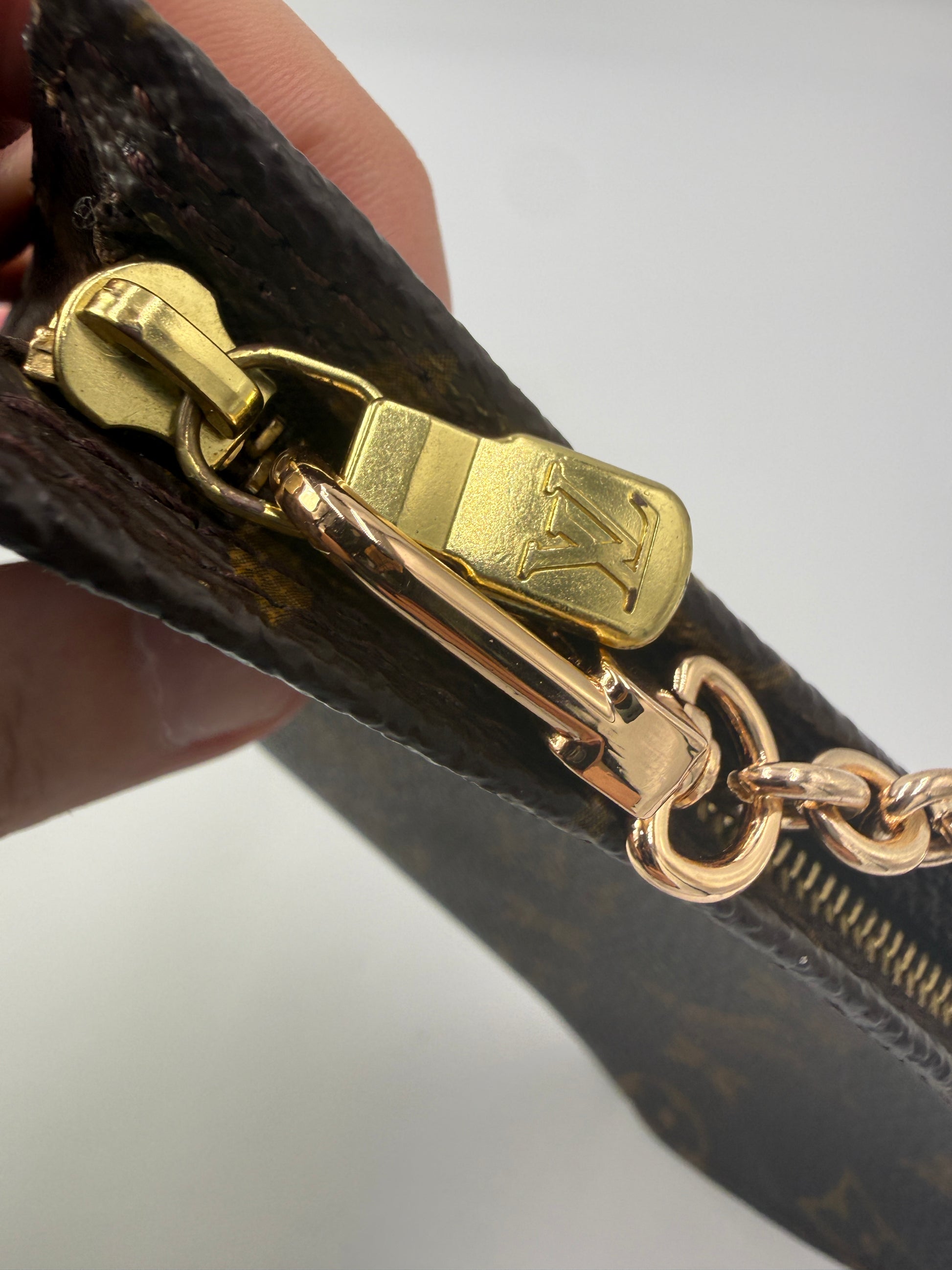 This authentic Louis Vuitton Monogram Bucket Pochette is a beautiful vintage accessory, originally designed as the detachable pouch that came with the classic LV Bucket Bag. Crafted from Louis Vuitton’s signature monogram coated canvas, it features gold-tone hardware, including a smooth LV-engraved zipper pull, and vachetta leather trim with a warm honey patina that adds timeless character.