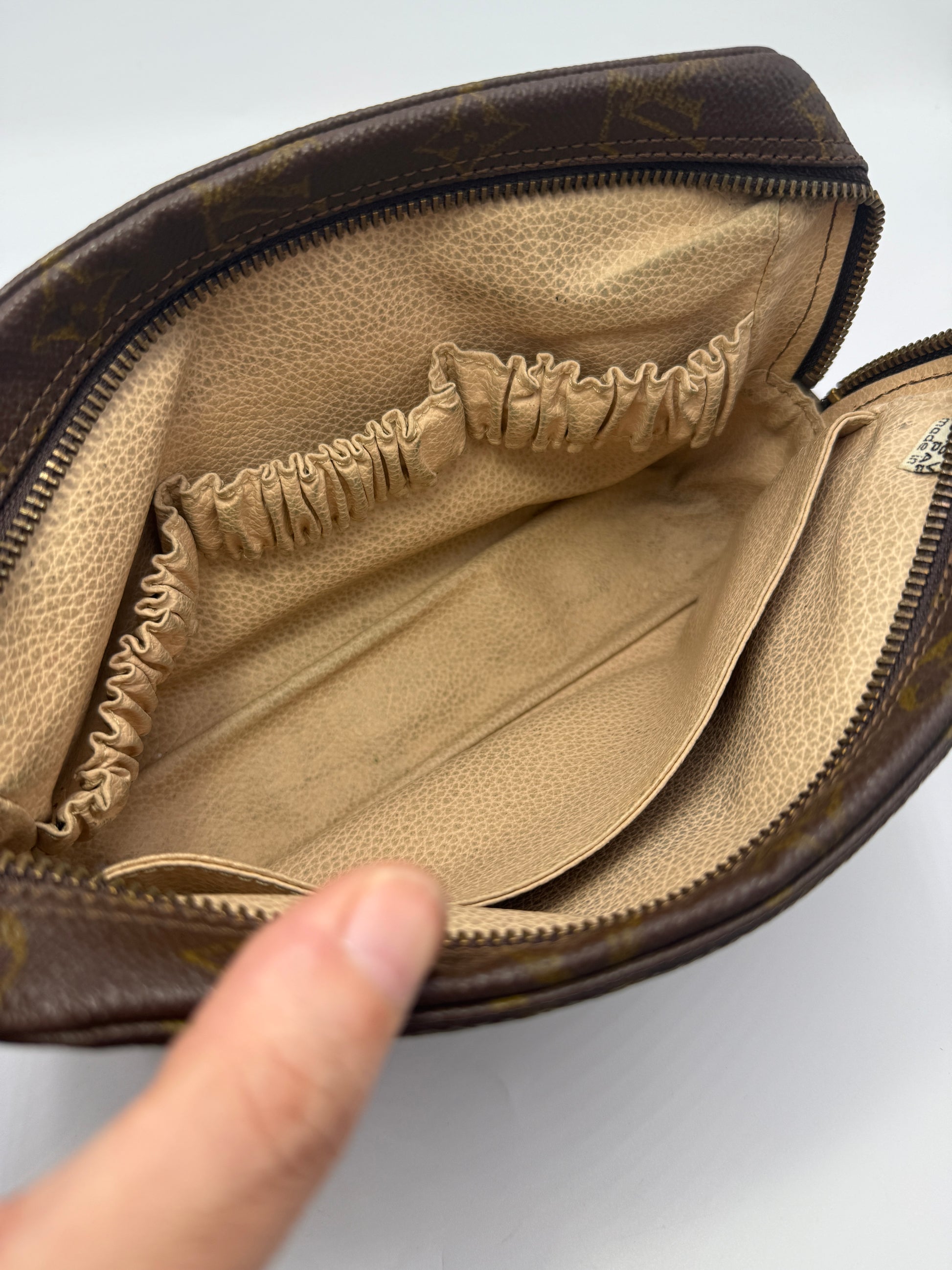 Designed with multiple compartments, it offers ample space to keep everything in its place, whether you’re jet-setting or staying organized at home. The gold-tone hardware adds a touch of understated elegance, while the zipper glides smoothly with no tears, fraying, or fabric separation—an excellent sign of the pouch’s lasting quality.
