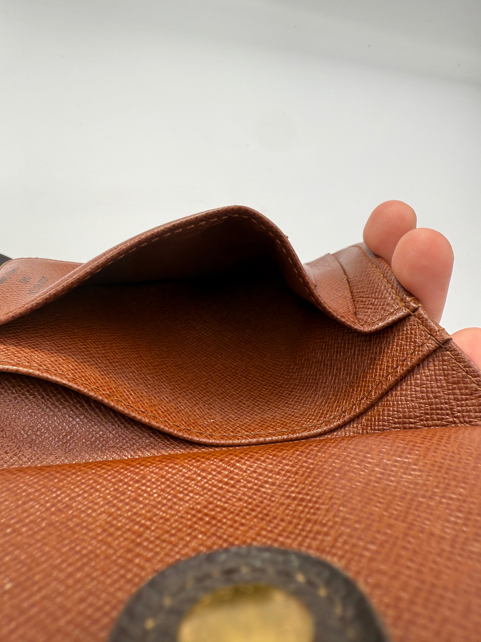 This beautifully structured wallet features the signature Monogram canvas exterior, paired with a smooth all-leather interior—a rare combination for its era. Despite its vintage status, it remains in excellent functional condition with no peeling or stickiness inside the compartments.