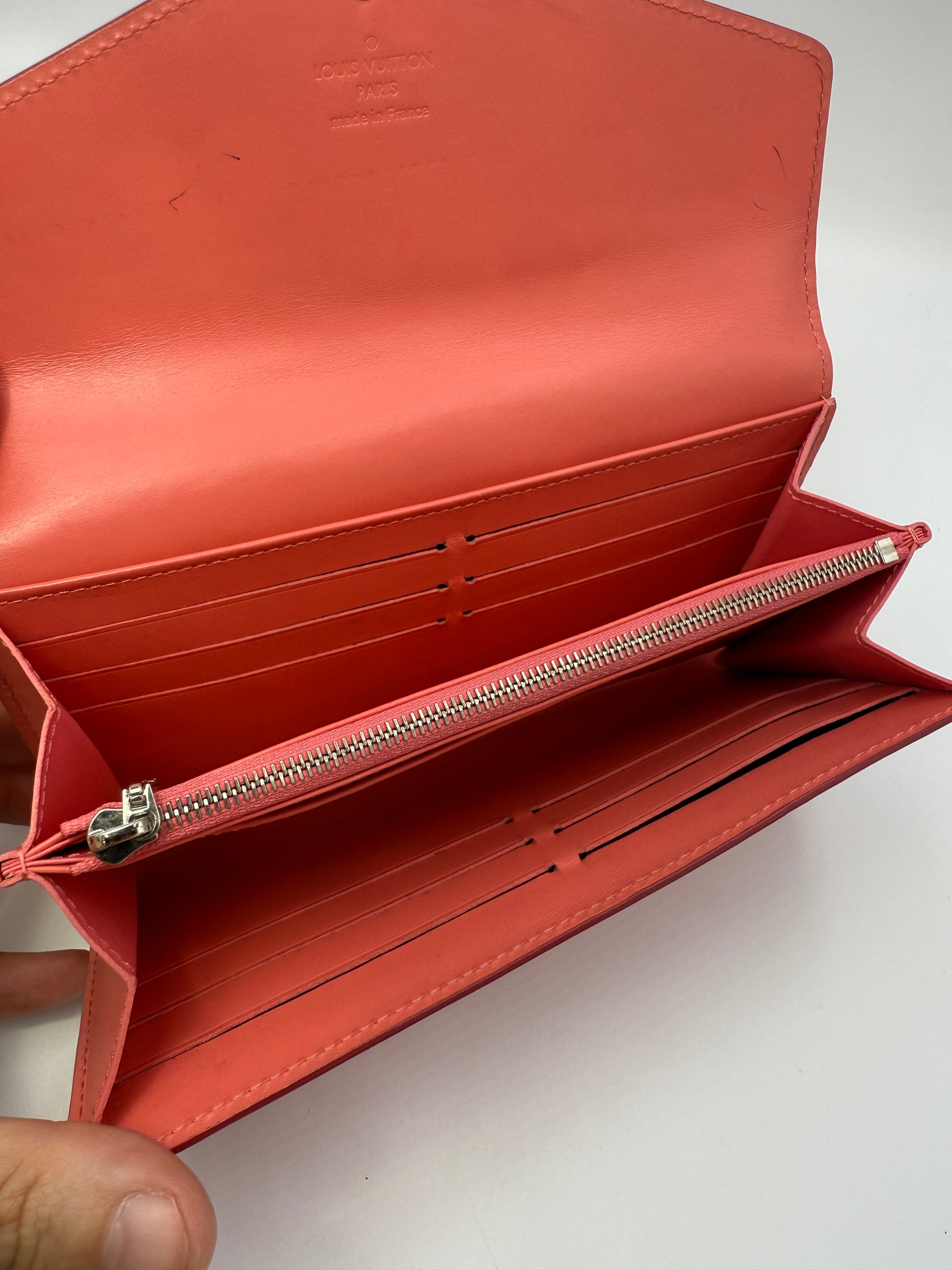 Pre-Owned Louis Vuitton Monogram Vernis Pink Rayures Sarah Wallet – Crossbody Convertible & Rare Find