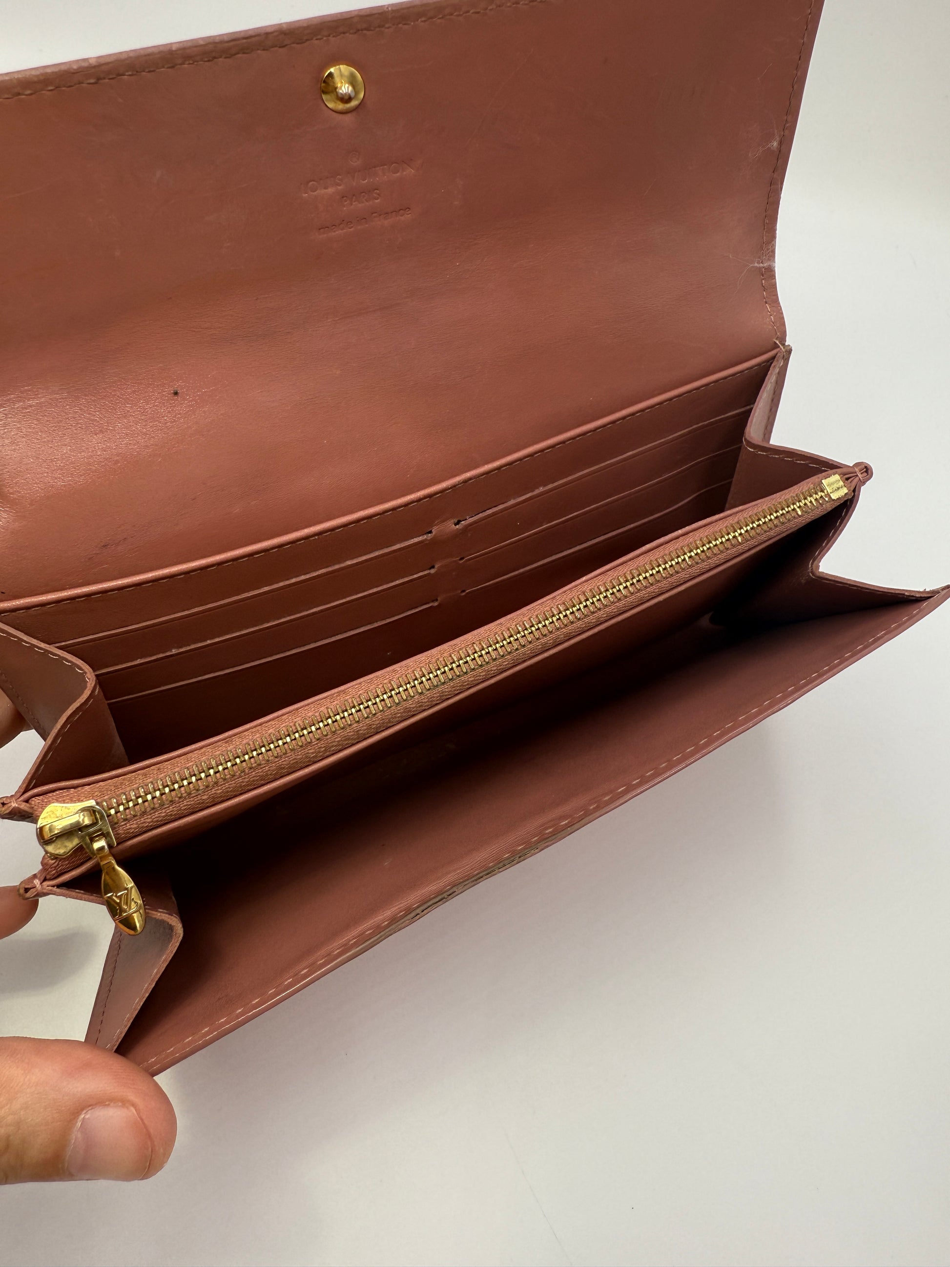 Pre-Owned Louis Vuitton Monogram Vernis Velours Rose Sarah Wallet – Crossbody Convertible
