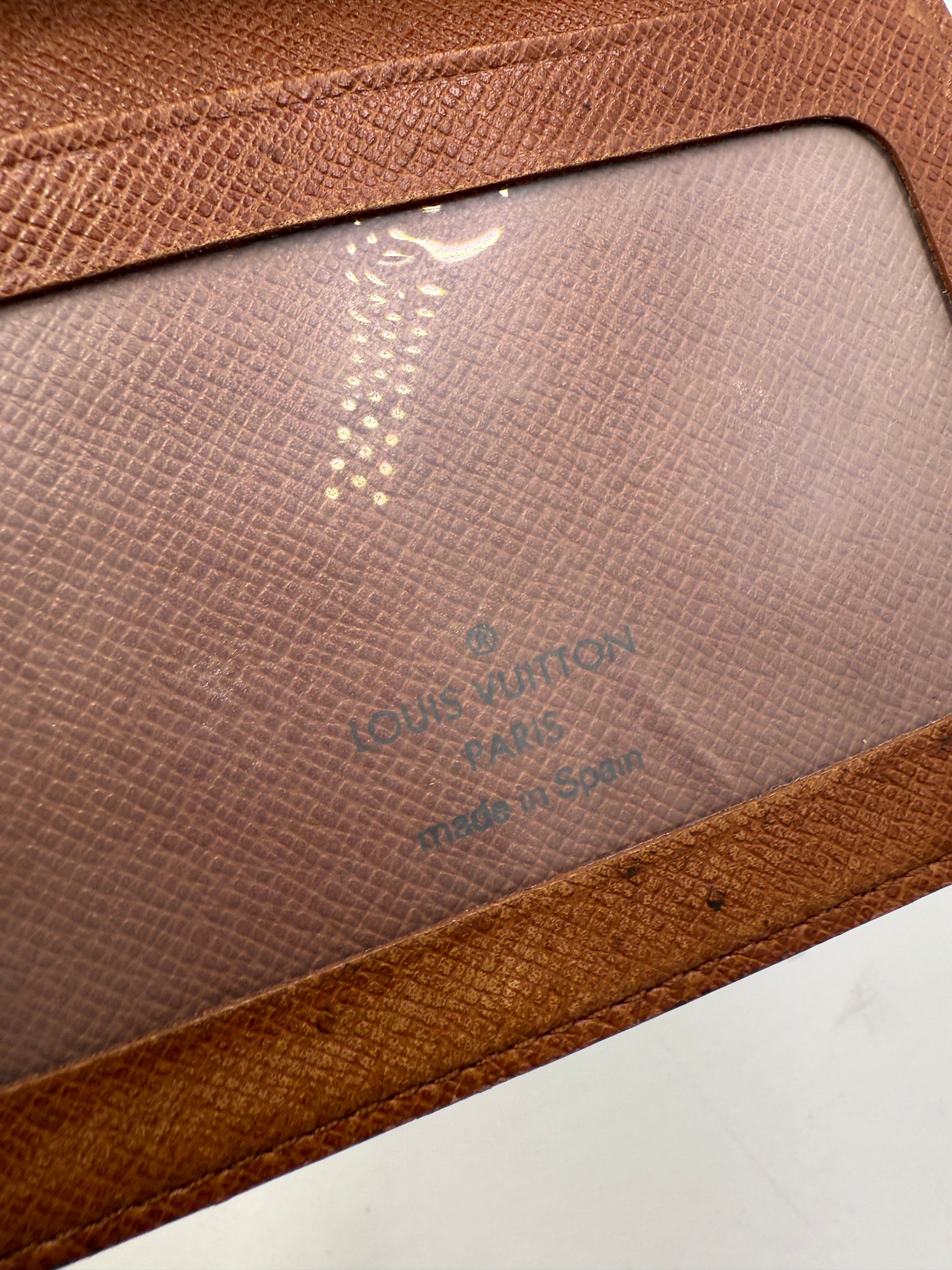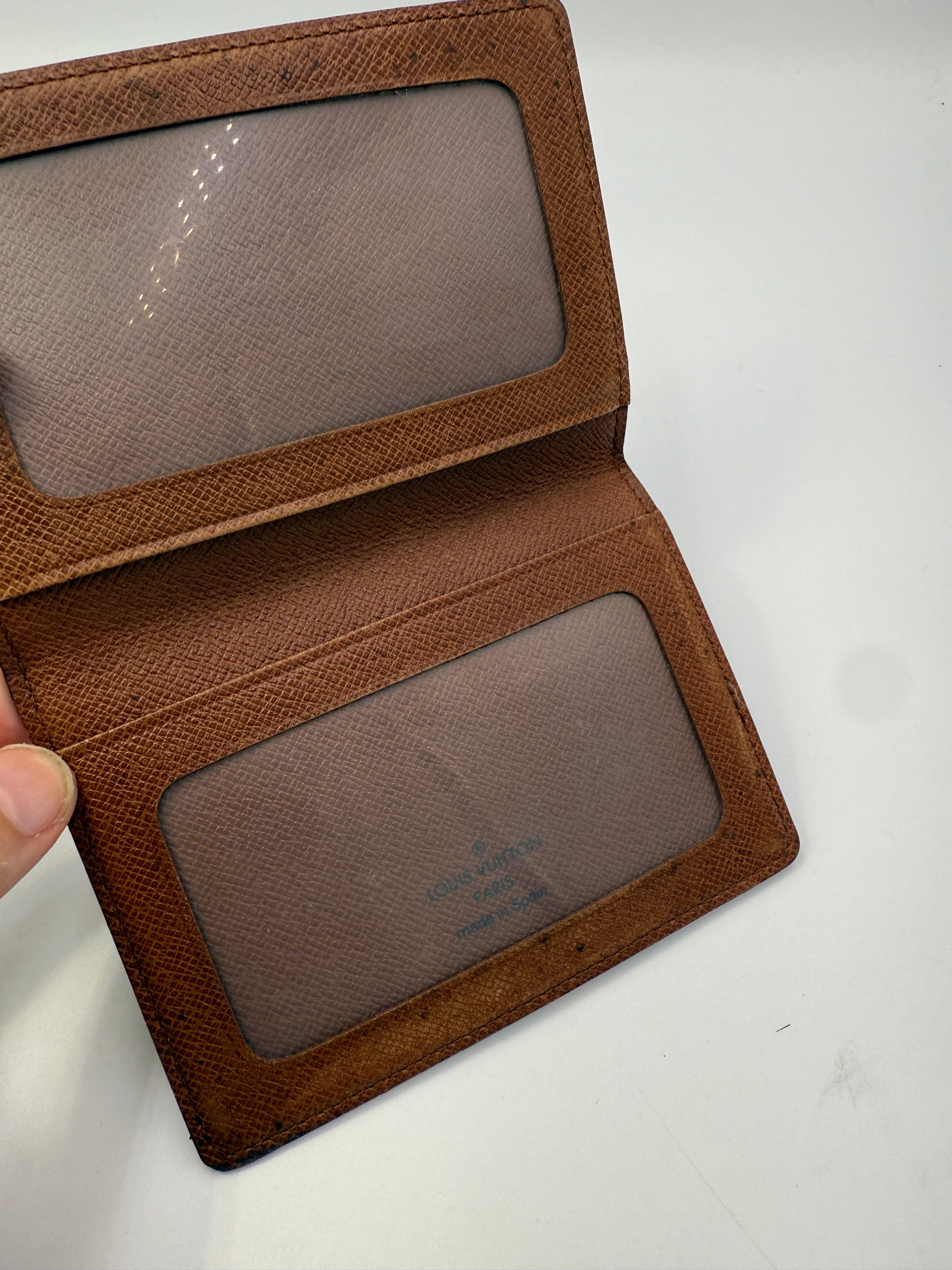 Step into timeless luxury with this authentic pre-owned Louis Vuitton Monogram Coated Canvas ID Holder, crafted in 1997. Designed for both elegance and practicality, this sophisticated accessory features two clear ID windows on the interior, ideal for displaying identification or travel cards with ease.