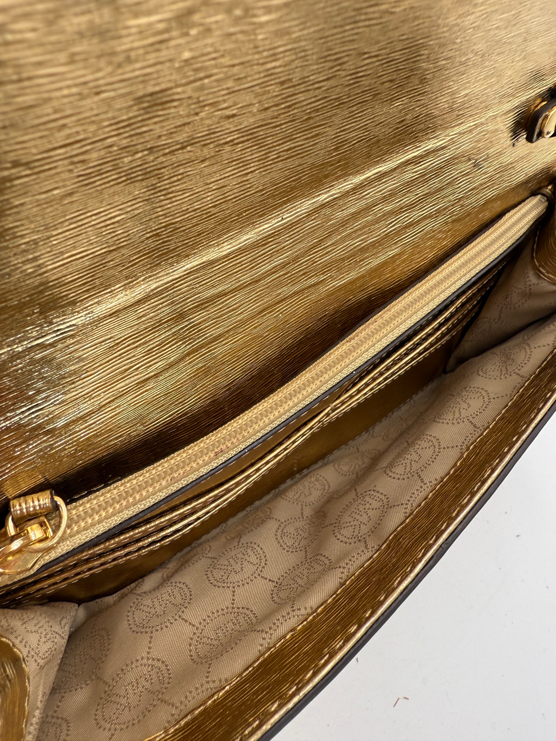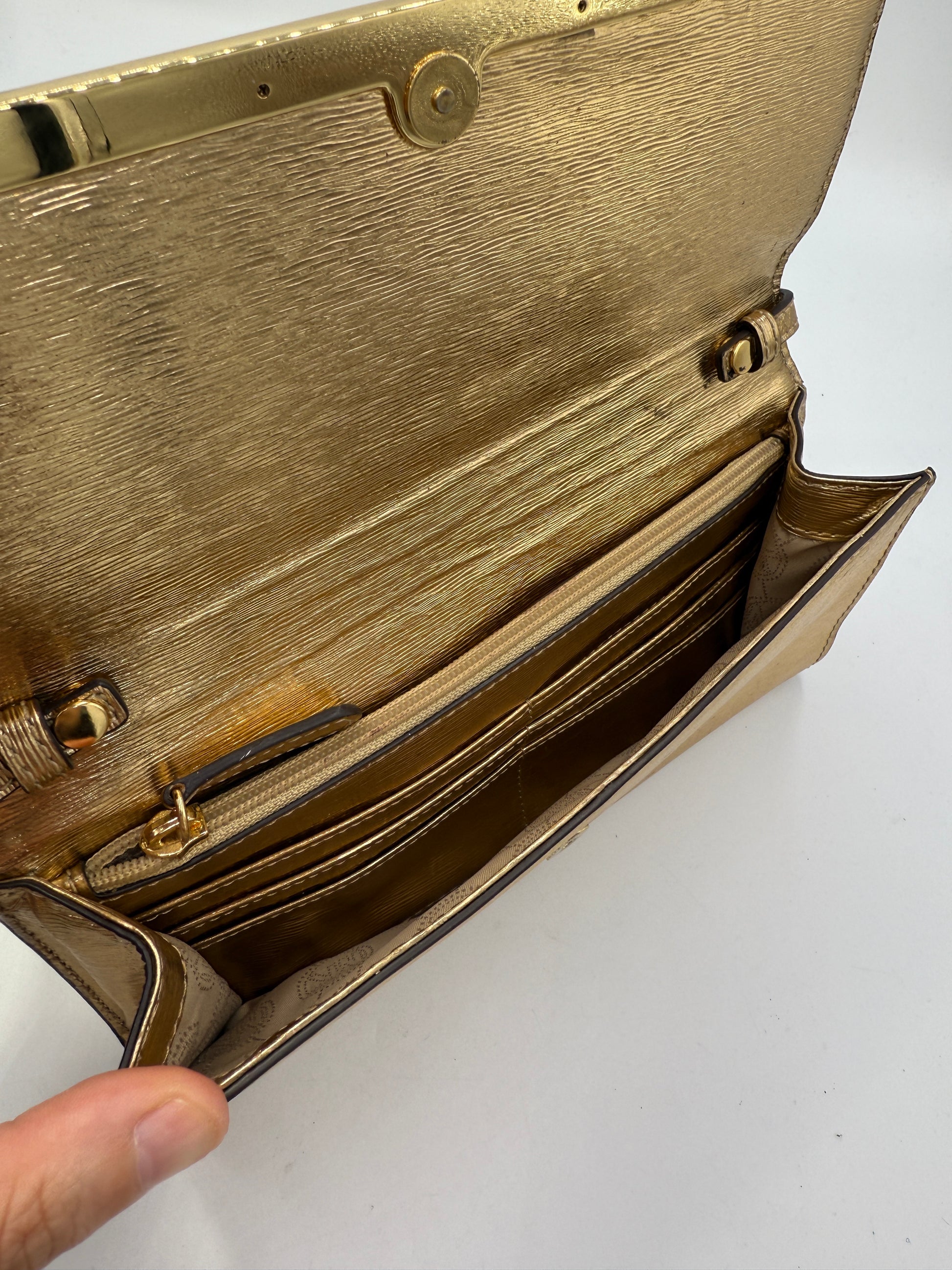 Michael Kors Gold Leather Clutch Crossbody Bag