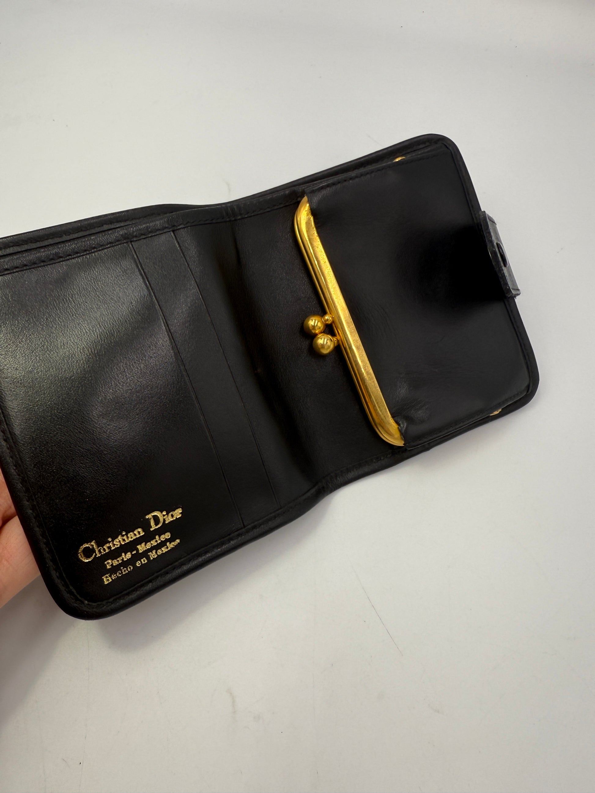 This rare piece was made in Mexico—an uncommon and highly sought-after detail that adds to its uniqueness. The interior is crafted from smooth leather, maintaining a refined and classic finish. Despite being pre-owned, this wallet remains in excellent condition with only minor signs of wear consistent with age. No foul odors present.