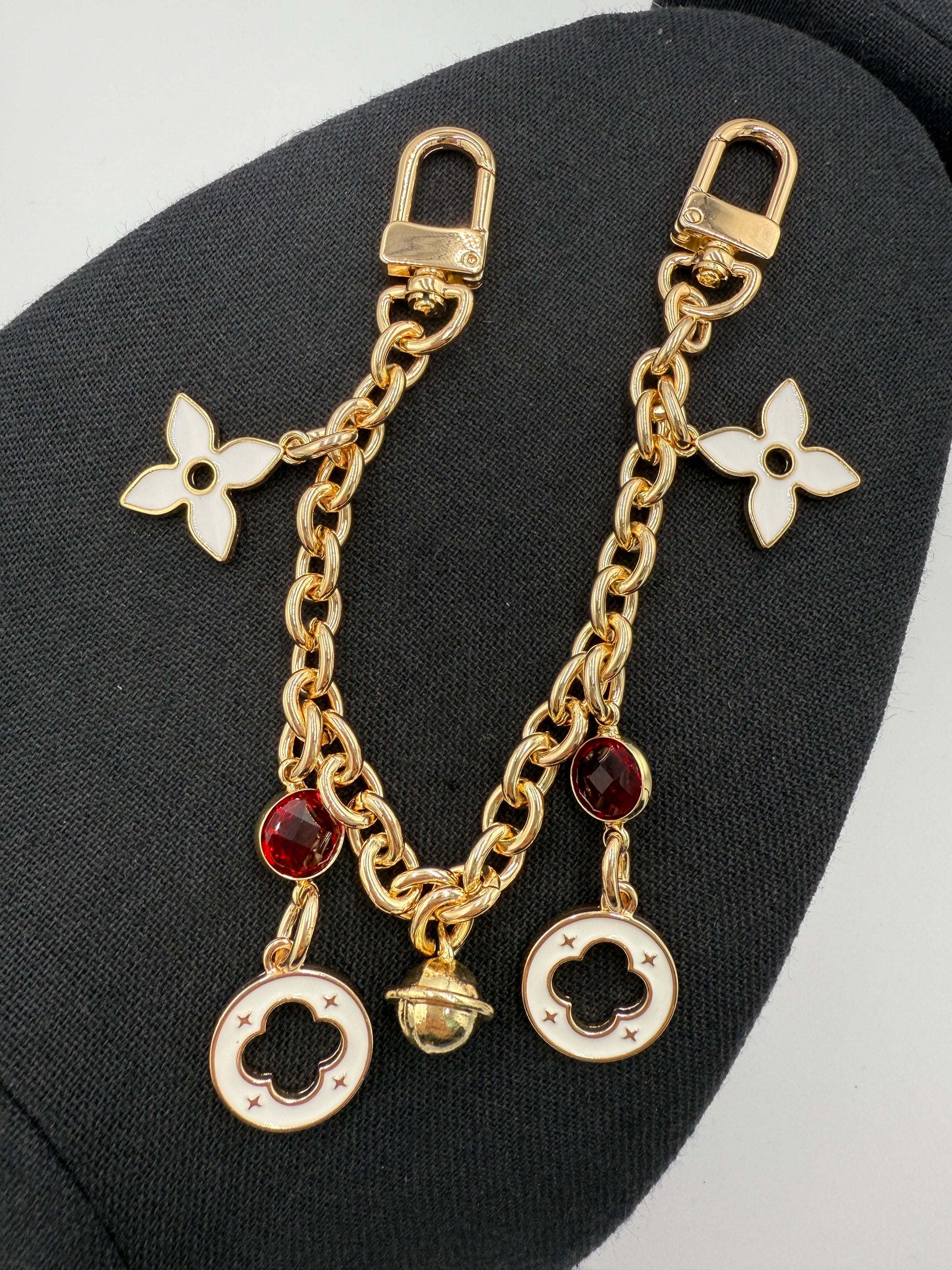 Unbranded White Clover & Ruby Gem Bag Charm 9"